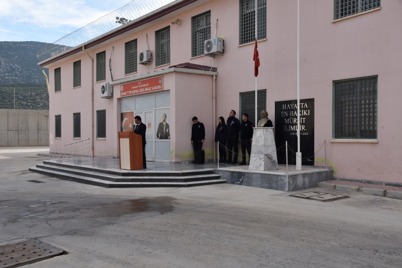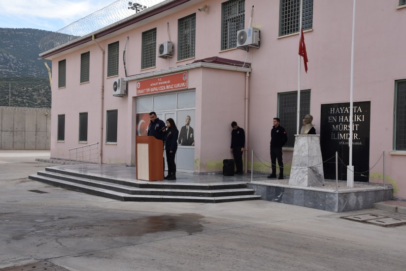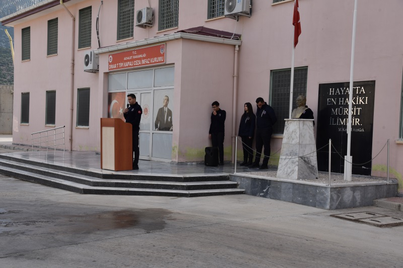 Tören Eğitim Servisi Memuru Zübeyir YILMAZ’ ın sunumuyla başlamıştır. Ardından 2 dakikalık saygı duruşu ve akabinde İstiklal Marşımız söylenmiştir. Törende Kurum İdare Memuru Halil İbrahim MEREY günün anlam ve önemini belirten konuşma yapmıştır. İdare Memurumuzun konuşmalarının ardından İnfaz ve Koruma Memurları Hakan ÖZTÜRK ve Hafize ÖZTÜRK günün anlam ve önemini anlatan şiir okudular.