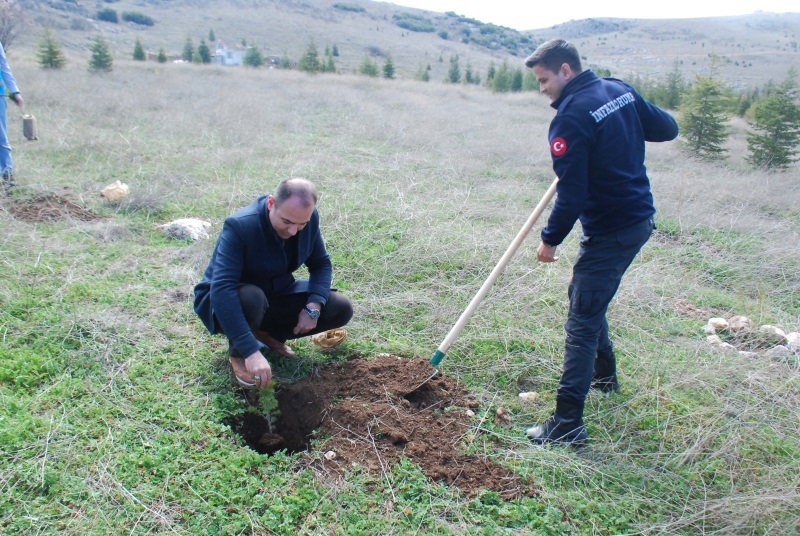 21-26 Mart Orman Haftası kapsamında 26 Mart Perşembe günü Dinar Eldere Köyü sınırlarında bulunan Adalet Ormanında 115 adet ağaç fidanı toprakla buluşturuldu.